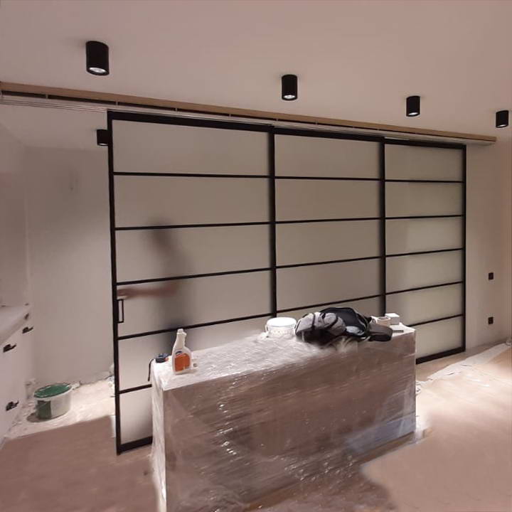 Офисные перегородки из алюминия позволяют разбить пространство на рабочие зоны путем комбинирования стационарных, раздвижных и распашных элементов.