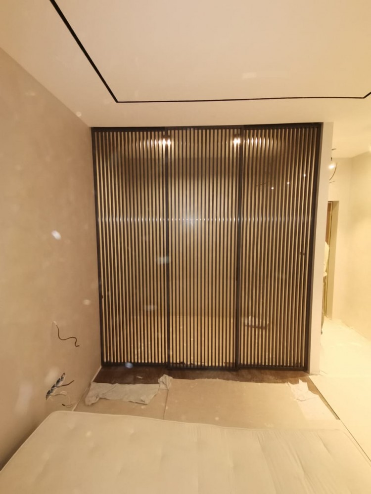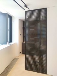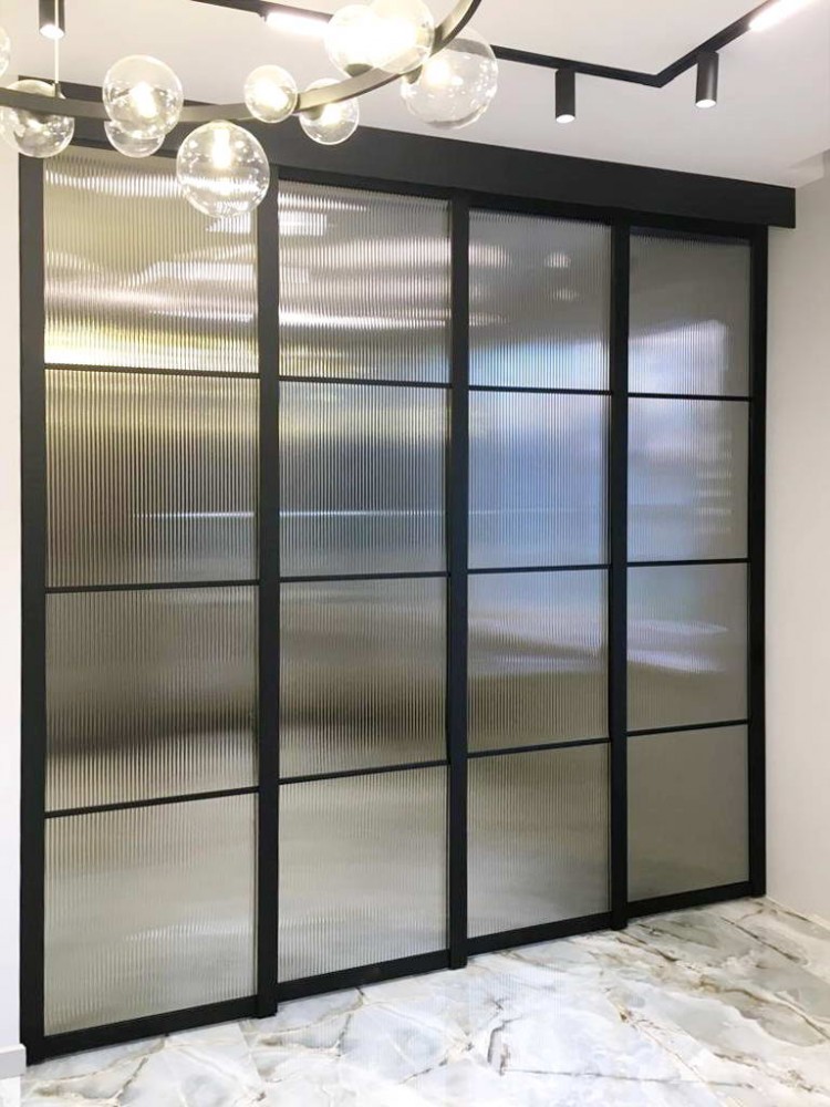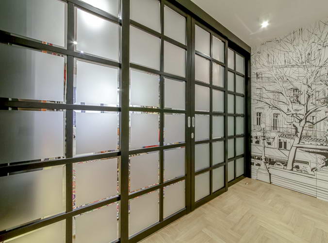 Горизонтальная или вертикальная раскладка на стекле - сегодня один из трендов. Такие решения позволяют разделить пространство на зоны, комбинируя раздвижные, распашные или стационарные полотна.