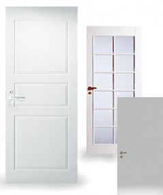 Финские двери бывают белые, серые и сделанные под дерево. Мы предлагаем окрашенные полотна двух базовых цветов, - белого и серого, а так же ламинированные полотна под дерево.