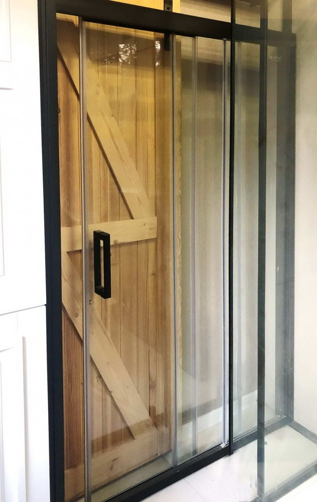 - Комплект: полный, стекло прозрачное 6 мм с фацетом, ручки, механизмы, карниз